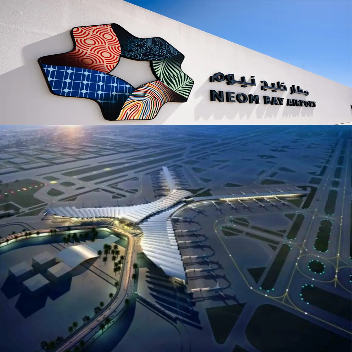 Neom Bay Airport, known as Neom Airport (IATA: NUM, ICAO: OENN), is a commercial airport located in Sharma, in the Tabuk region, northwest of the Kingdom of Saudi Arabia. It is 75 kilometers away from the governorate of Daba, and 48 kilometers from the nearest airport, which is Sharm El Sheikh International Airport. It is one of four airports that will be built in the city of Neom. Al-Ghaith Air Conditioning Company has implemented the central air conditioning and ventilation ductwork, and it is considered one of the most important mega projects in the Kingdom and one of the goals of Vision 2030.